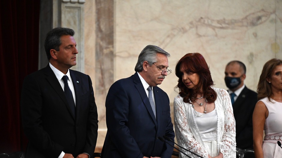 Alberto habló una hora y cuarenta y cinco minutos, luego de un minuto de silencio en homenaje a las víctimas de las guerra en Ucrania, reclamado a los gritos por el jefe del interbloque UCR Mario Negri.